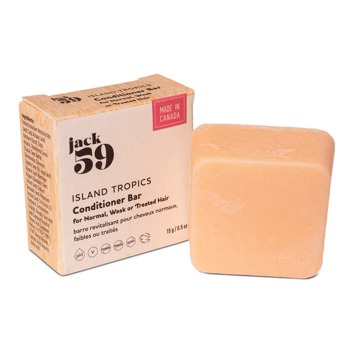 Bring tropical hydration on the go with Jack59's Island Tropics Conditioner Travel Buddies Singles. This good hair conditioner features bamboo and jojoba to strengthen and add shine to damaged strands. This compact travel size conditioner bar and hair conditioner bar is ideal for beach trips or as a refill for your Weekend Edition Travel Set.
