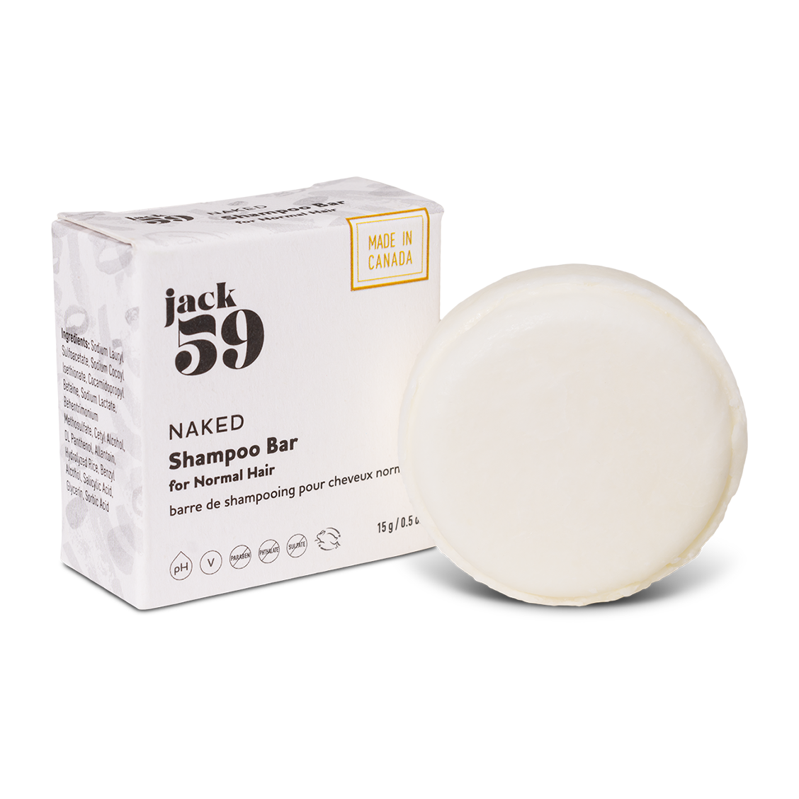 Keep it pure with Jack59's Naked Shampoo Travel Buddies Singles. This perfume free shampoo and Canadian made shampoo features no added fragrance or color—just gentle, effective cleansing for sensitive scalps. Each travel shampoo bar delivers the same unscented care as our full-size products. Perfect for those with sensitivities or as a refill for your Weekend Edition Travel Set.